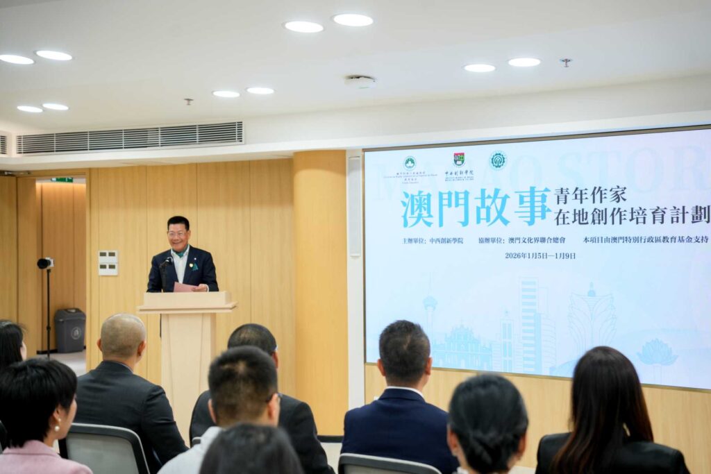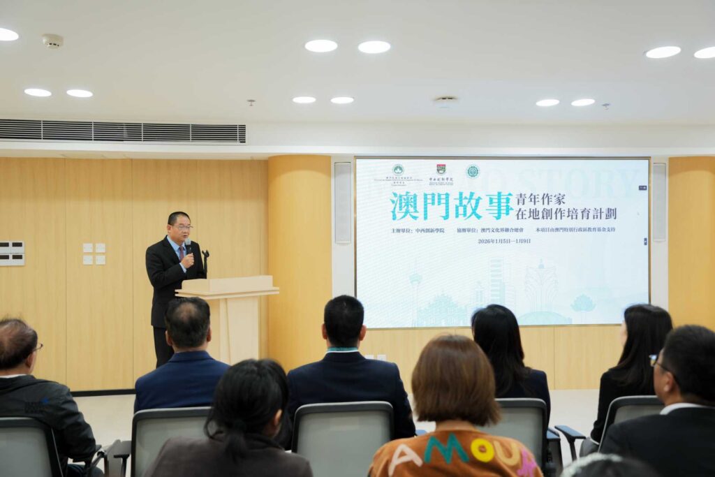 仲偉合在致辭中表示,是次計劃的實施不僅是文學人才培育項目,更是高校積極服務國家文化戰略、參與澳門文化建設的重要實踐。他強調,文學是塑造城市形象、傳遞經驗的重要載體。他提出,學校將結合「數智+」辦學特色與人文育人理念,推動文學創作與城市文化、人才培養深度融合,為學員提供將澳門經驗帶入當代中國與世界視野的實踐平台。
