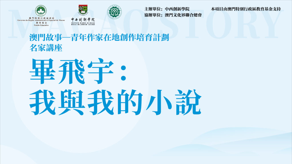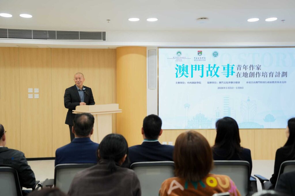2026年1月5日,為鼓勵澳門青年寫好澳門故事、講好中國故事,進一步推動澳門文學事業發展,助力澳門建設「以中華文化為主流、多元文化共存的交流合作基地」,中西創新學院特別邀請中國作家協會副主席、江蘇省作家協會主席、南京大學教授、著名作家畢飛宇親臨澳門,領銜「澳門故事——青年作家在地創作培育計劃」。是次計劃獲澳門文化界聯合總會協辦及澳門特別行政區教育基金支持。