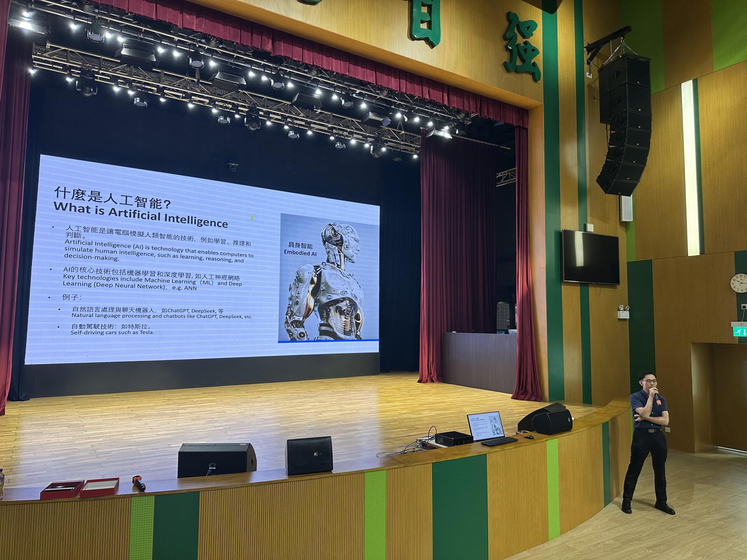 學校數字科技學院助理教授陳俊杰博士以“人工智能與你的未來”為主題做了分享。他深入淺出地介紹人工智能的發展現況與應用場景,並鼓勵學生思考如何在未來的學習與職涯中,善用科技工具提升競爭力。