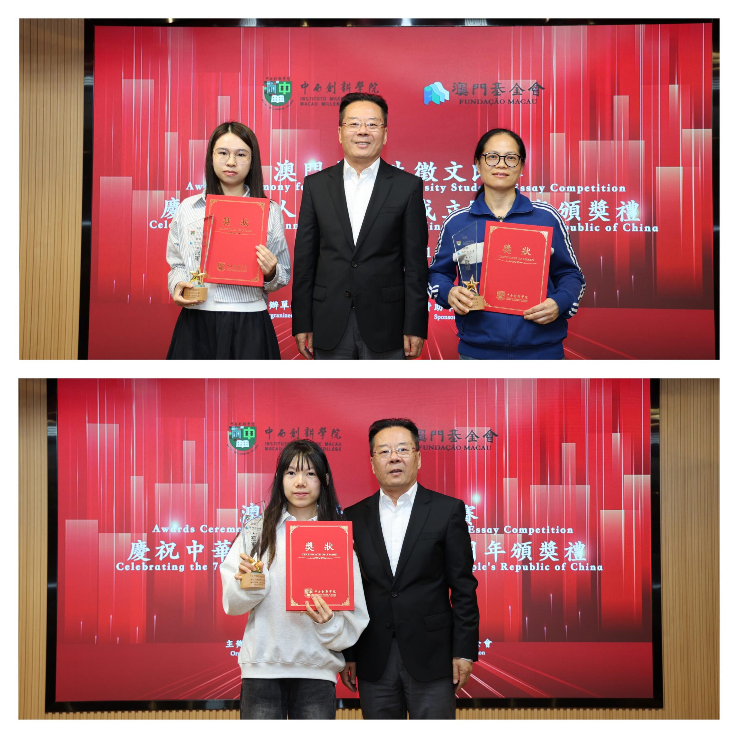 由中西創新學院主办,澳門基金會贊助的「為慶祝中華人民共和國成立76周年澳門大學生徵文比賽」頒獎典禮於2025年11月13日在中西創新學院中土大廈舉行。中西創新學院副校長王立非等出席頒獎典禮。