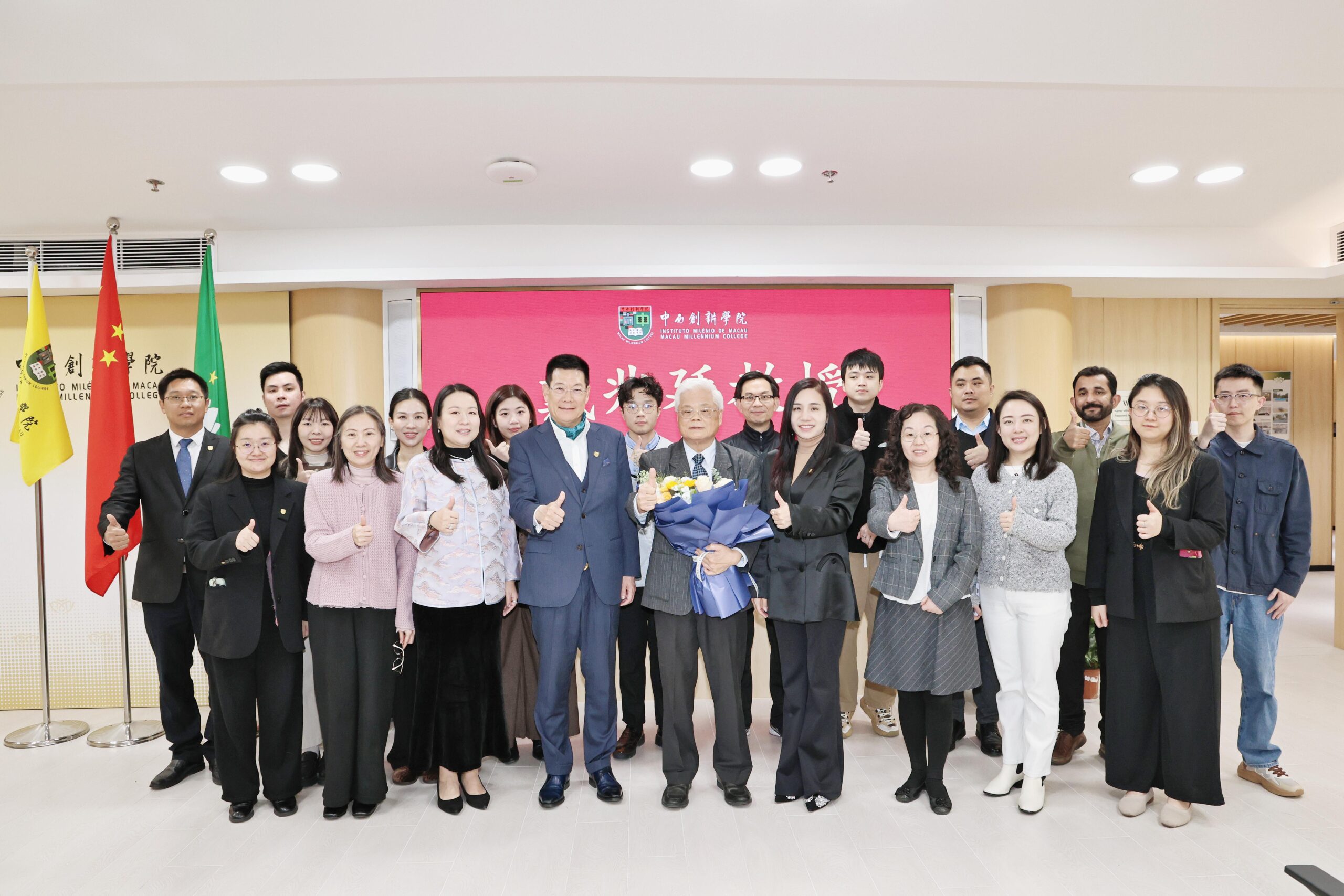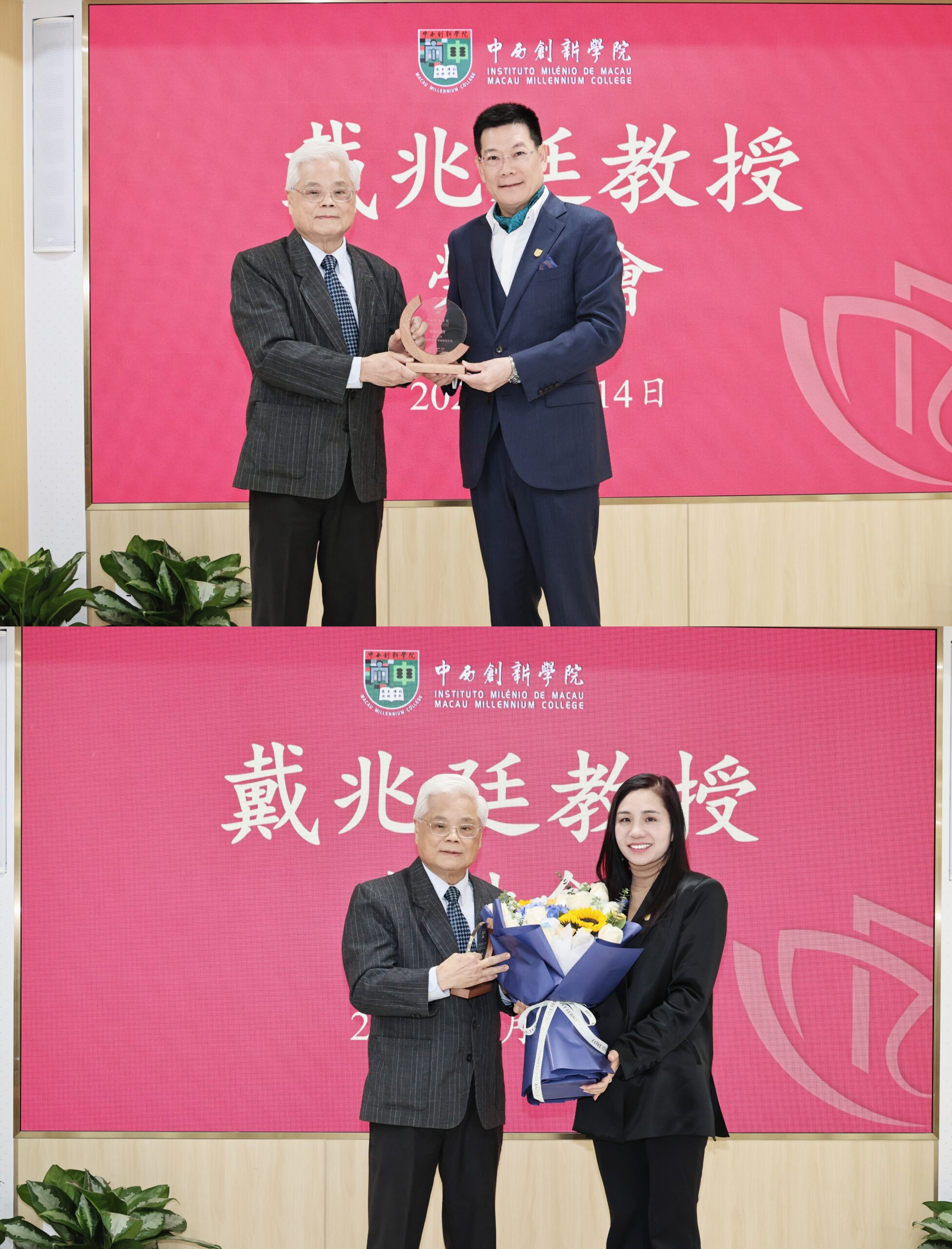 2026年1月14日,中西創新學院於氹仔校區舉行戴兆廷教授榮休會,以表彰及感謝戴兆廷為學校發展作出的卓越貢獻。校長仲偉合、助理校長黃華與教職員齊聚一堂,共同見證這一溫馨而有意義的時刻。會議由校長辦公室主任魏球主持。
