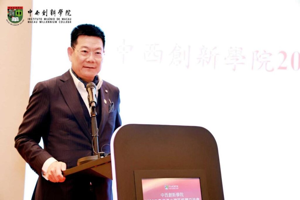 校長仲偉合向傳媒嘉賓詳細闡述了學校的發展近況與戰略藍圖。他首先誠摯感謝媒體長期以來的支持,近年透過各界尤其是媒體的持續關注與報道,學校知名度顯著提升。他指出,學校堅持「三融、三聯、三面向、三服務」的辦學思路,順應數字時代與澳門「1+4」產業多元發展戰略,正構建以「數智+」為核心的樞紐式學科架構,涵蓋數智科創、數智經濟、數智社會、數智人文四大學域,致力打造成為澳門領先、灣區特色、有國際影響力的創新型、國際化、應用研究型大學。展望未來,學校設定了清晰的階段性目標,力爭成為灣區國際化人才培養的標杆。
