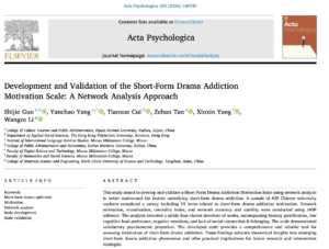 近日,中西創新學院楊艷超副教授作為通訊作者,在國際知名心理學期刊Acta Psychologica上發表題為 Development and Validation of the Short-Form Drama Addiction Motivation Scale: A Network Analysis Approach 的研究論文。該研究運用網絡分析方法,開發並驗證了一套「短劇成癮動機量表」,為理解當前短劇成癮的形成機制提供了重要的測量工具。