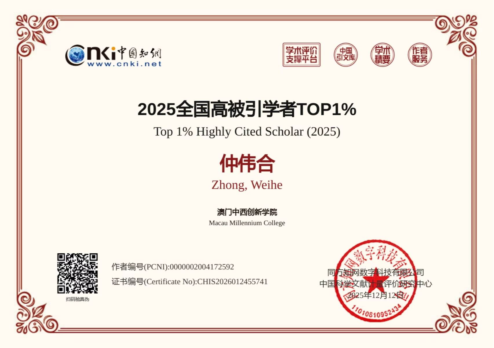 據悉,本次入選外國語言文學學科全國高被引學者前1%的學者中,澳門地區共有3位,該校佔兩席,進一步彰顯了學院在語言學及相關研究領域的領先地位。