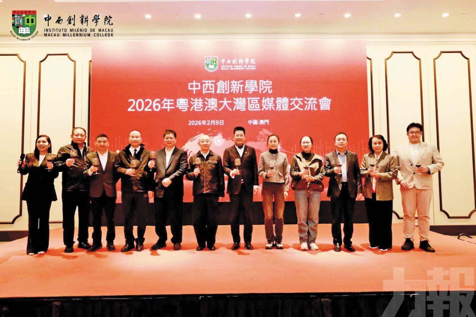 中西創新學院2月9日晚七時假澳門葡京人酒店二樓宴會廳舉行「2026年粵港澳大灣區媒體交流會」。校長仲偉合致辭時重申,學院將秉持「三融、三聯、三面向、三服務」辦學思路,致力建設成為澳門領先、具灣區特色及國際影響力的創新型、國際化、應用研究型大學。