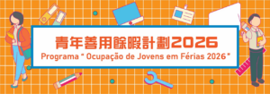 “青年善用餘暇計劃”旨在為青年學生提供培訓及短期實習,活動對象為持有澳門居民身份證的18歲至35歲的在學學生及應屆畢業生。獲錄取的參加者將被安排於2026年7月至8月期間到本澳公共部門或私營機構等進行約6個星期的實習活動。