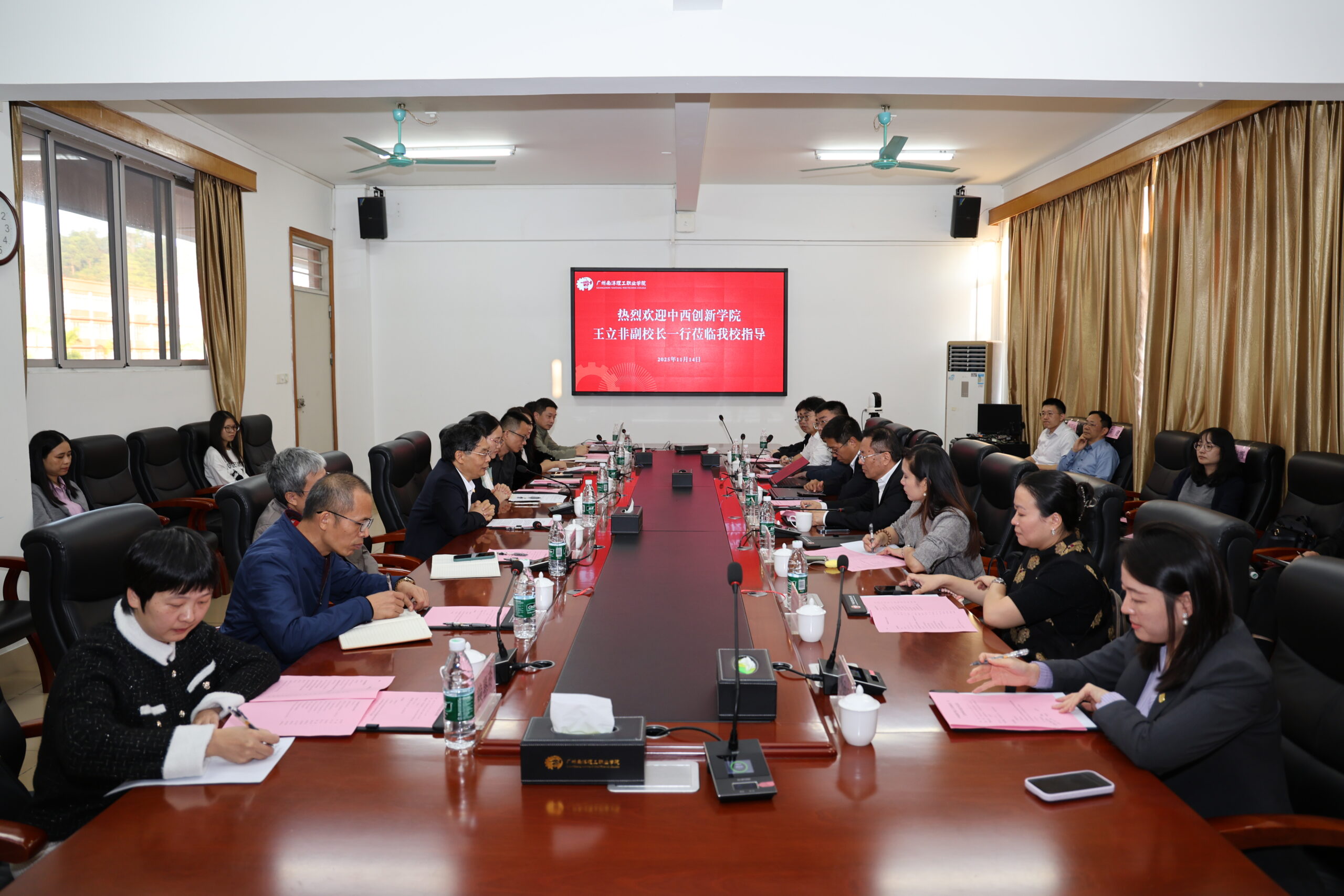 此前,14日下午,王立非副校長率學院代表團赴廣州南洋理工職業學院開展友好訪問,雙方圍繞「跨境電商產業學院共建」「雙語課程資源共享」等議題達成初步合作意向。
