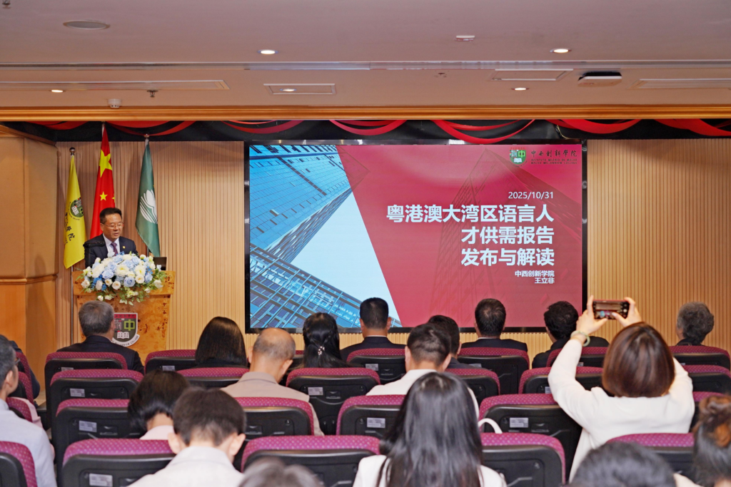 Wang Lifei, Distinguished Professor at MMC and Chair of the Board of Directors of the Society, released and interpreted the Big Data Report on Talent Supply and Demand for Language-Intensive Positions in the Guangdong-Hong Kong-Macao Greater Bay Area. The report, based on the three major national strategies of Digital China, Healthy China, and the Belt and Road Initiative, systematically analyses the current structure and future trends of language talent in the Greater Bay Area. Research shows that language services are becoming an important infrastructure supporting the digital economy, cross-border trade, and intelligent healthcare. The report, for the first time, clearly identifies three core types of language talent—language technology professionals, language healthcare specialists, and Belt and Road multilingual experts—corresponding to the strategic needs in AI and big data applications, language rehabilitation and special education services, and multilingual international cooperation. According to an analysis of recruitment big data from January to August 2025, Belt and Road language positions accounted for the largest share at 71.7%, followed by language technology roles at 26.3%. Although language healthcare positions accounted for only 2%, they showed the fastest growth rate. The report predicts that by 2030, the total demand for language talent in the Greater Bay Area will reach 450,000, with the demand for language technology professionals growing at an annual rate of 24.6% and for language healthcare specialists growing by 38%. Currently, 70 universities in the Greater Bay Area offer foreign language or translation programmes, covering 26 languages, but there is still a structural gap between these programmes and the needs of emerging industries. The report proposes four key action directions. First, advance the development of master’s and doctoral programmes and practice bases for “Digital and Intelligent Language Services”; second, co-build a Guangdong-Hong Kong-Macao language services platform and promote resource sharing; third, establish a language technology innovation fund to advance “AI + Language Rehabilitation” applications; fourth, create a language services hub in the Free Trade Zone to fully support high-quality language talent cultivation and industry development by 2030.