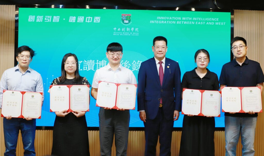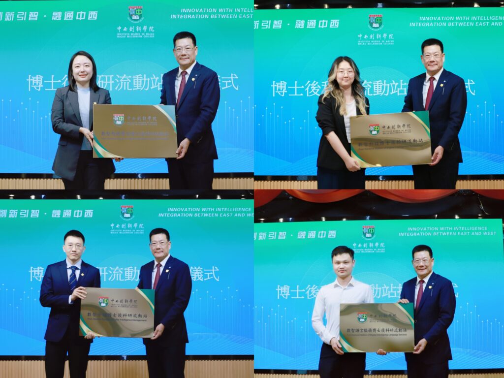 On the afternoon of 29 July 2025, the “‘Innovation with Intelligence, Integration between East and West’ Inauguration Ceremony and Symposium for the Postdoctoral Research Station” was grandly held in the auditorium and conference room of Macau Millennium College (“MMC”). This event marked an important step for MMC in advancing high-level talent cultivation and research innovation. MMC leadership, postdoctoral supervisors, postdoctoral research fellows, and representatives from various departments attended the ceremony.