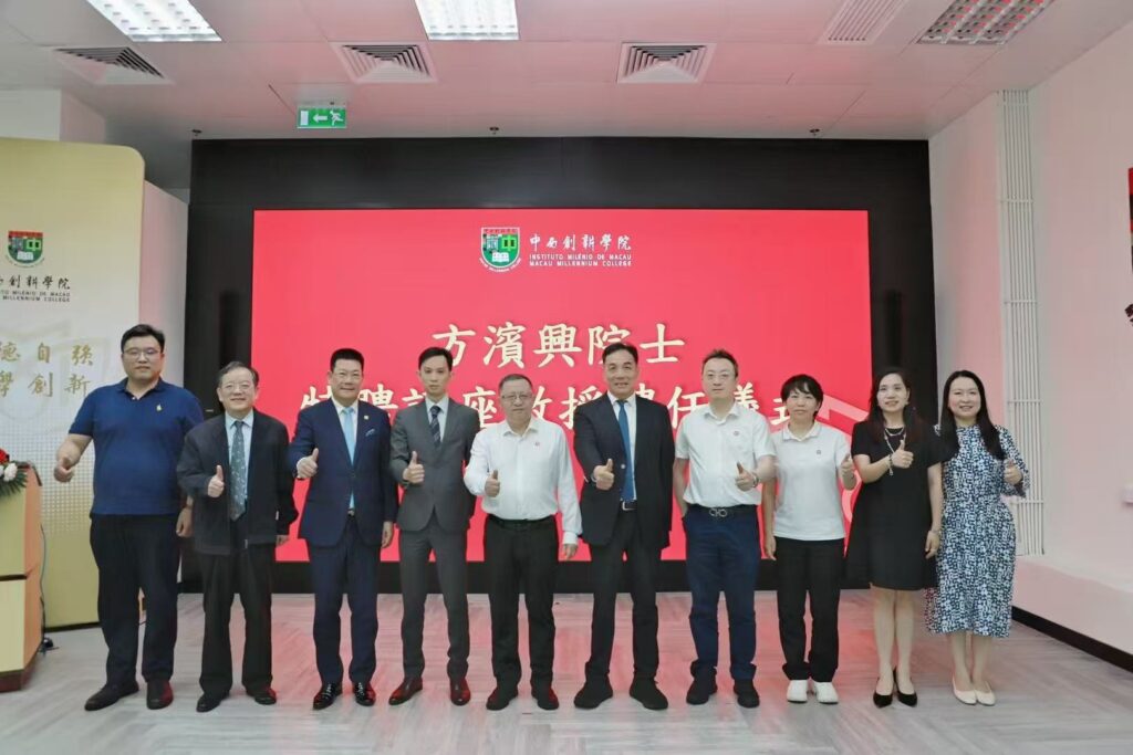 On 23 May, Professor Fang Binxing, an academician of the Chinese Academy of Engineering and a leading expert in cybersecurity, was appointed as the first Distinguished Chair Professor at Macau Millennium College (“MMC”).