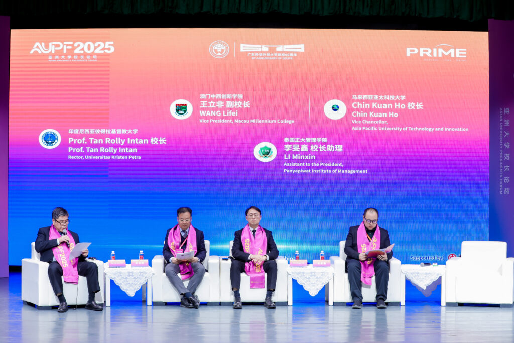 From 20 to 22 November, Rector Zhong Weihe, together with Vice Rector Wang Lifei and Wei Qiu, Director of the Rector’s Office, represented Macau Millennium College (“MMC”) at the Asian University Presidents Forum (“AUPF”) 2025 and the 60th Anniversary Celebration Series of Guangdong University of Foreign Studies (“GDUFS”). The delegation also participated—as a founding member institution—in the Inaugural Meeting of the Guangdong–Hong Kong–Macao Greater Bay Area–Southeast Asia Think Tank Cooperation Alliance and the First Academic Symposium, among several other major events.